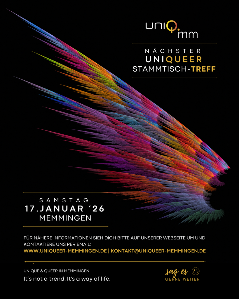 Du hast Lust, neue Leute kennenzulernen, dich auszutauschen und einfach mal in unsere queere Runde reinzuschnuppern? Dann ist unser Stammtisch genau der richtige Startpunkt.